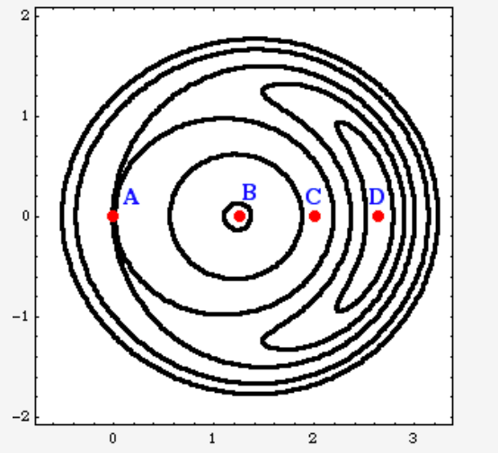 Saddle Point Contour Plot - Schematic contour plot of an energy surface showing an